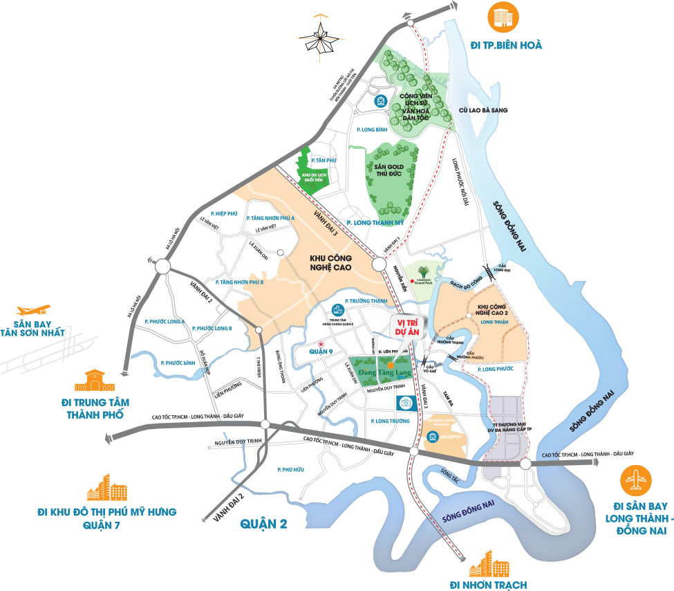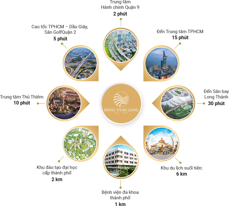 Chỉ 14 km về tới trung tâm Quận 1 theo tuyến đường Nguyễn Duy Trinh kết nối với cao tốc HCM - Long Thành Dầu Giây.