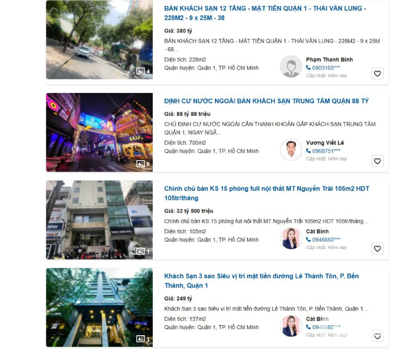 Quảng cáo rao bán khách sạn trên các trang giao dịch bất động sản trực tuyến